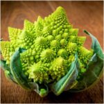 Il broccolo romanesco assomiglia ad un cavolfiore, ma è verde chiaro, ha una forma piramidale e tante piccole rosette disposte a spirale, rosette che riproducono la forma principale e si ripetono con regolarità. Ogni rosetta è composta da numerose rosette più piccole.